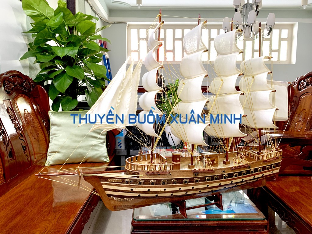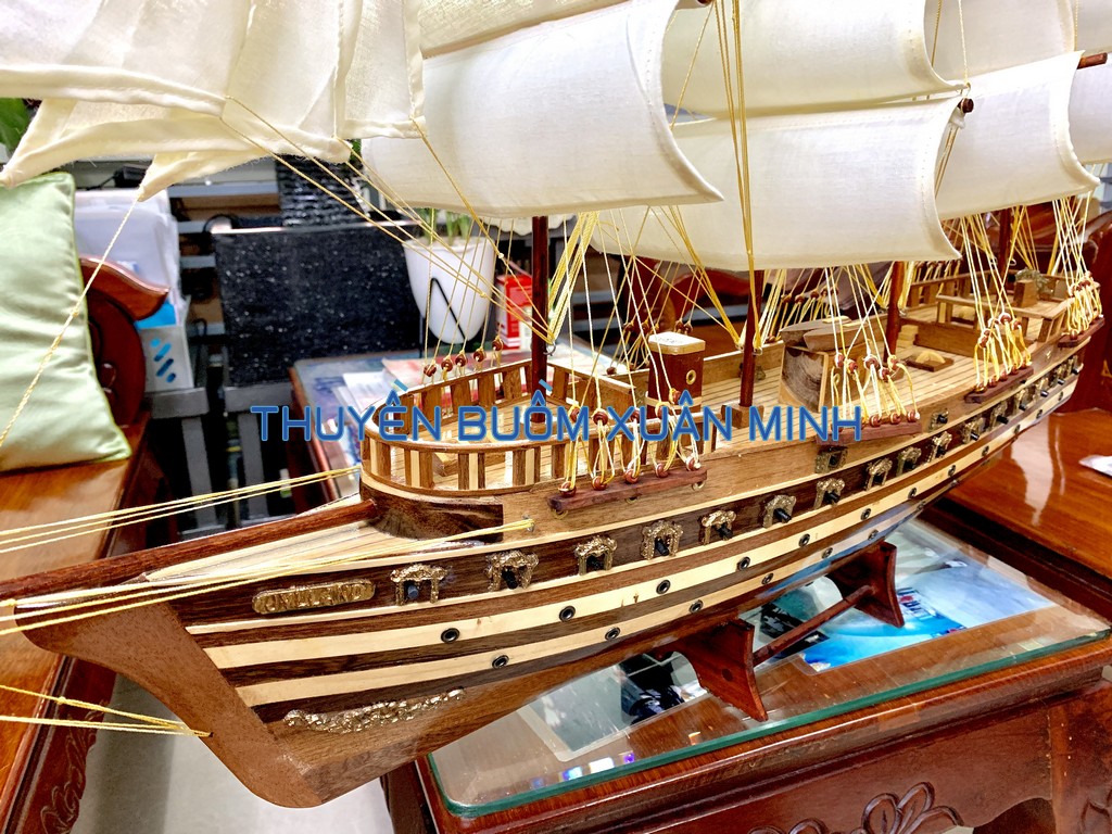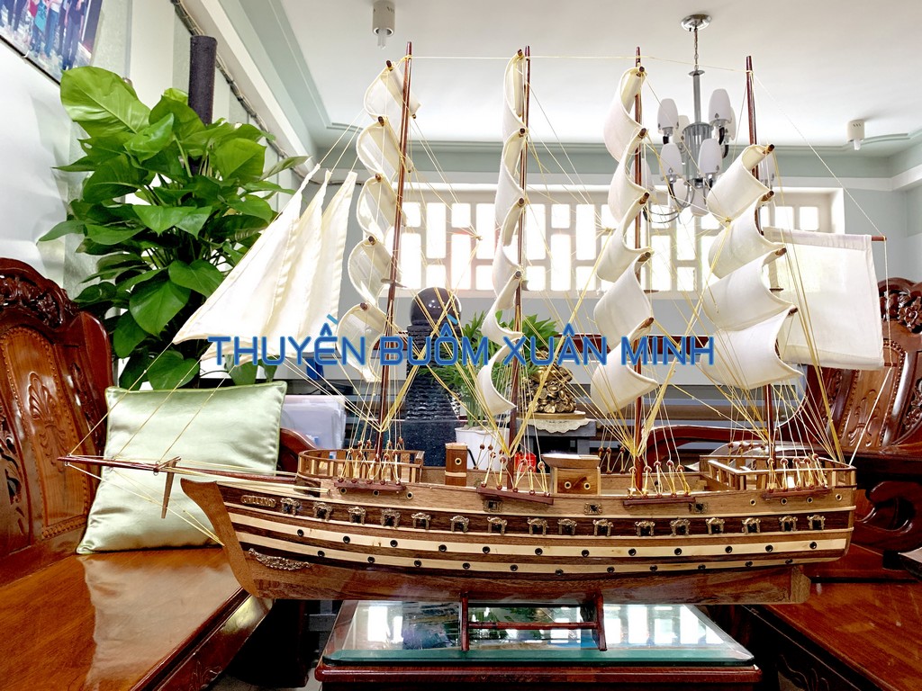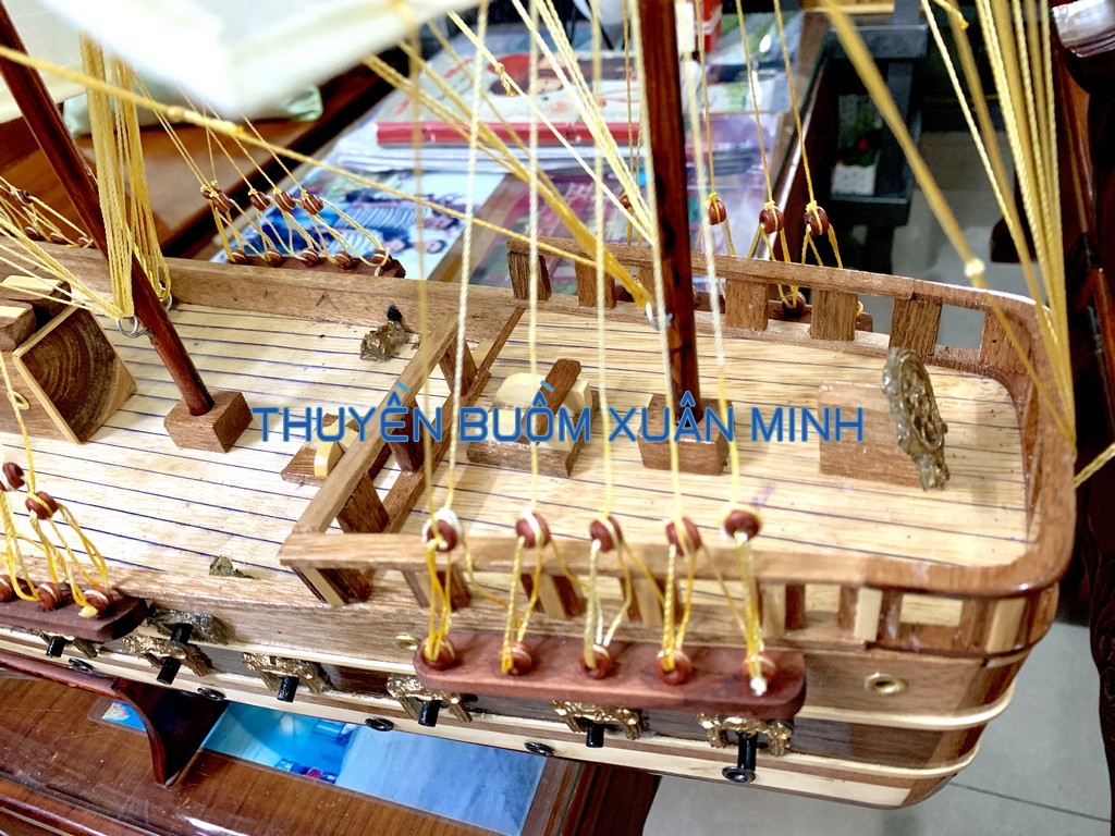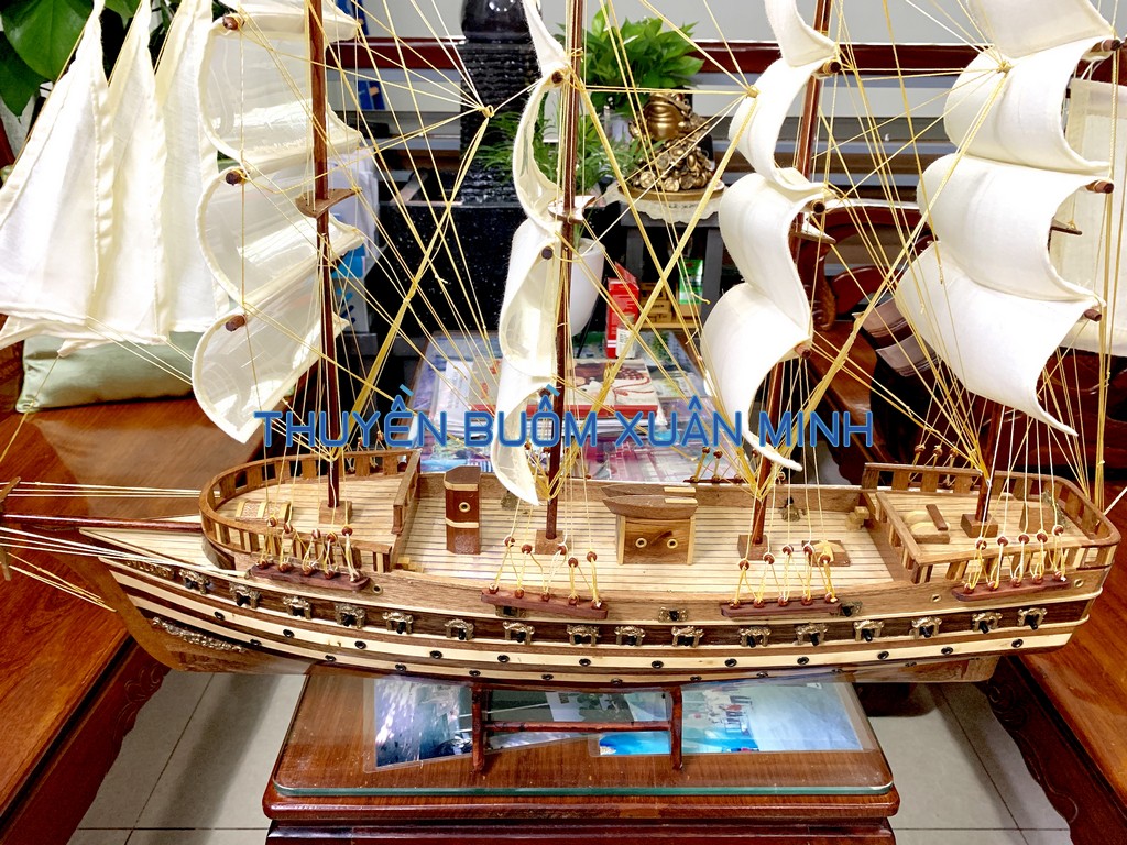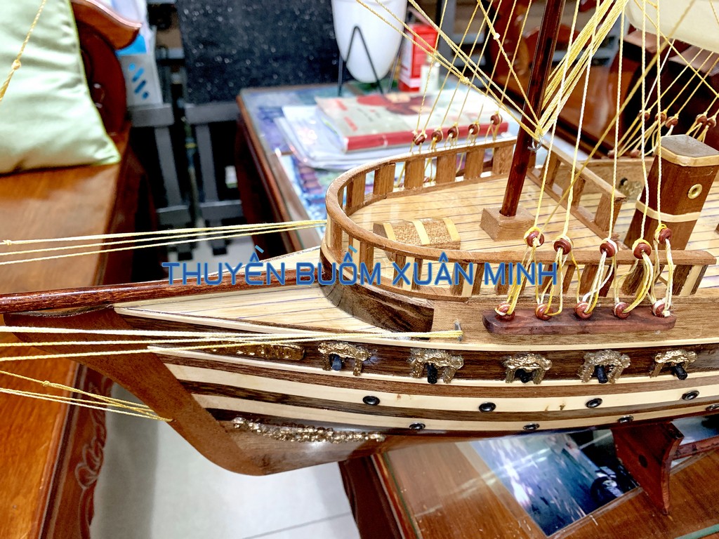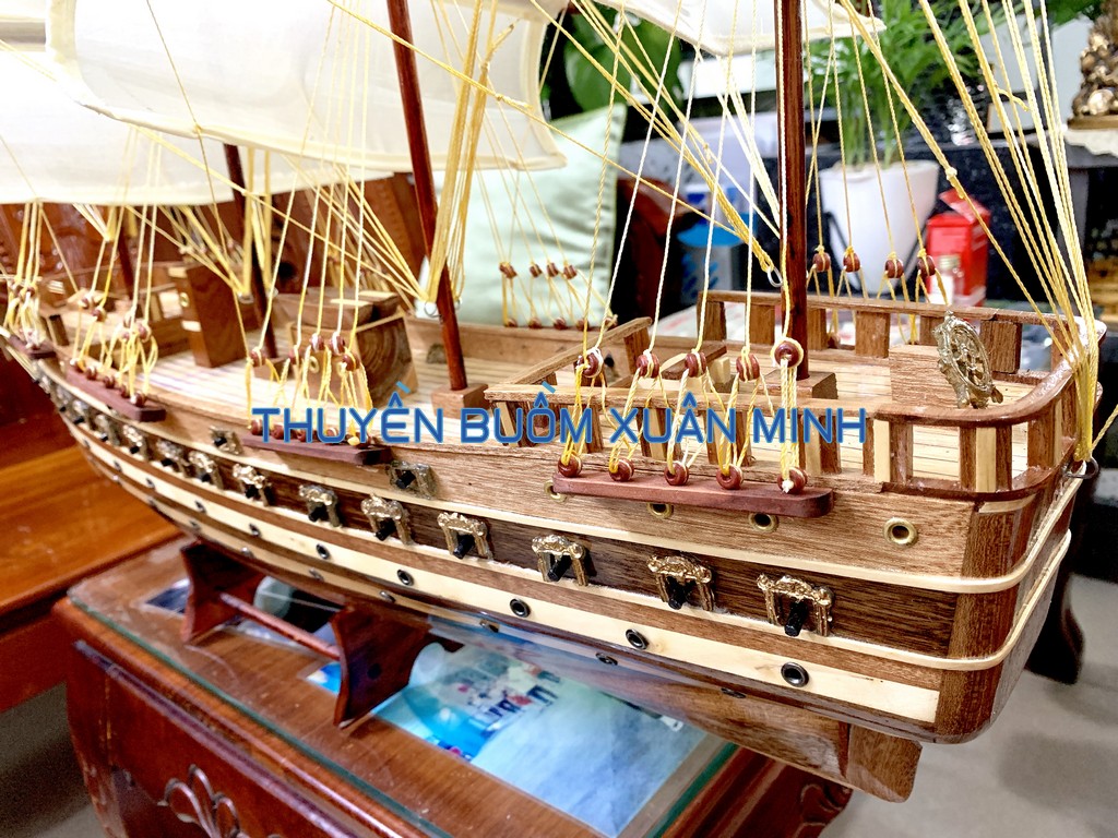_ Mô hình được thiết kế tỉ mỉ, chắc chắn và được chạm khắc tinh xảo, bắt mắt người xem với chất liệu gỗ tự nhiên cùng với lớp sơn bóng PU không lo mối mọt trong thời gian dài. Hơn nữa các chi tiết, bộ phận như vỏ tàu, thân tàu, boong tàu, cột và cánh buồm, cũng như các trang trí khác.. được thiết kế phù hợp với tỷ lệ mô hình thuyền gỗ này.