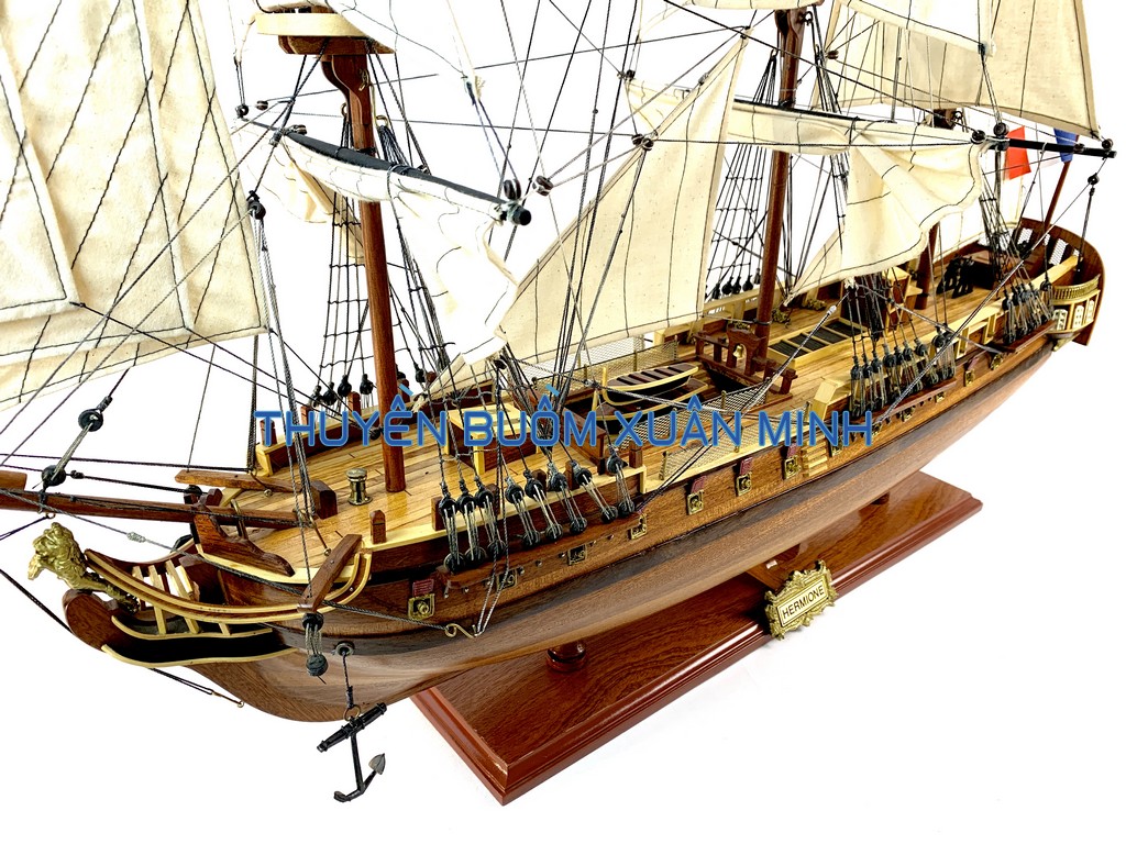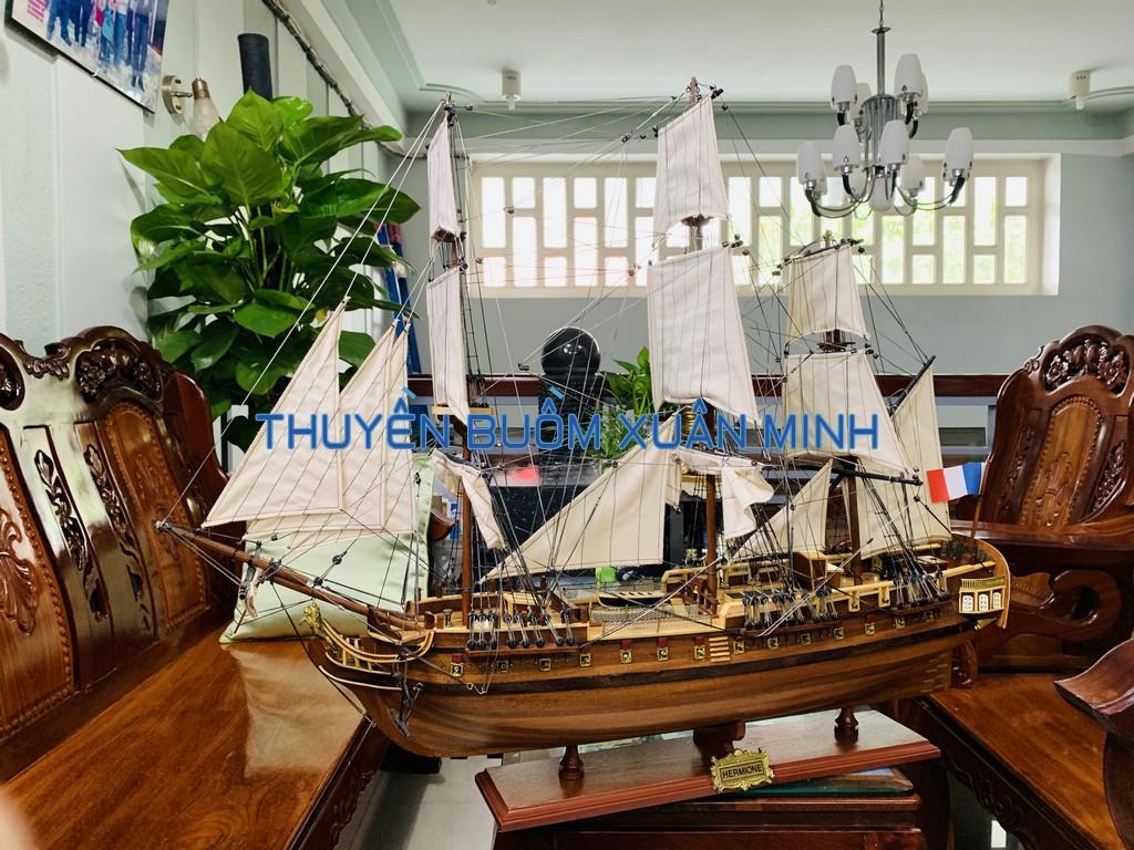 **MÔ HÌNH THUYỀN CHIẾN HẠM HOÀNG GIA HERMIONE (TÀU CỔ CHIẾN HẠM PHÁP) | HÀNG XUẤT KHẨU - GỖ CĂM XE | THÂN 80cm