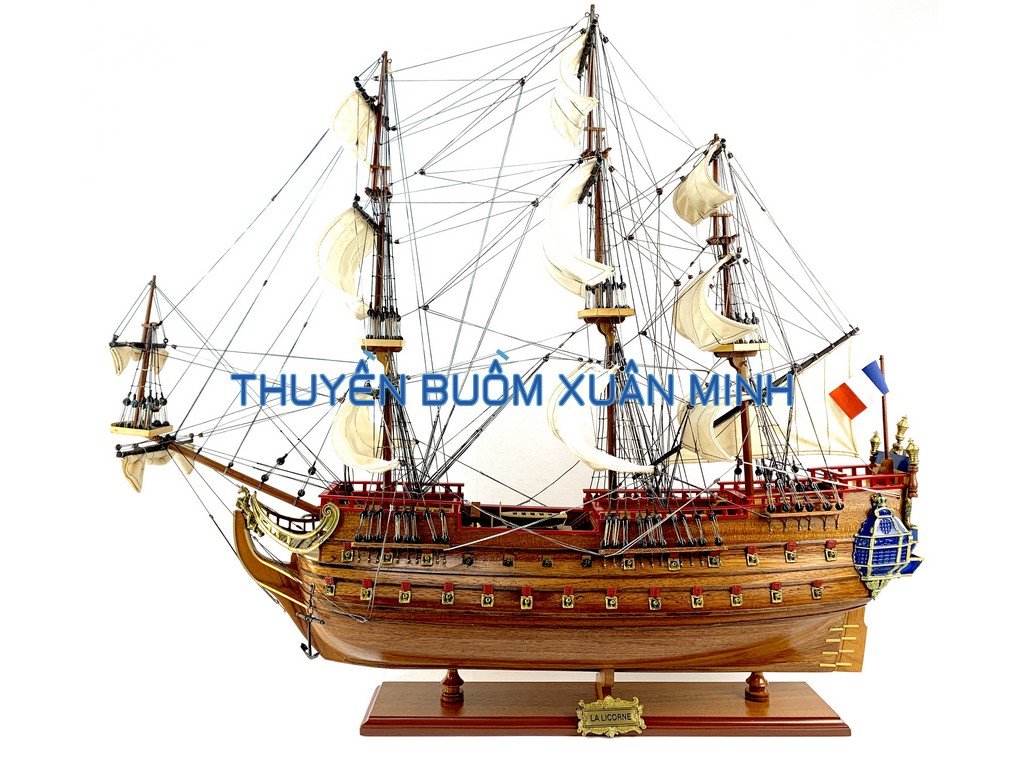 **MÔ HÌNH THUYỀN CHIẾN HẠM HOÀNG GIA LA LICORNE (TÀU CỔ CHIẾN HẠM PHÁP) | HÀNG XUẤT KHẨU - GỖ CĂM XE | THÂN 80cm