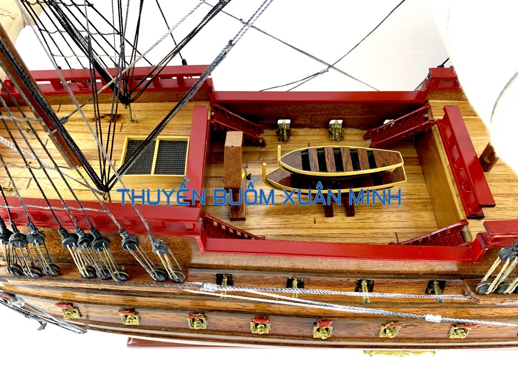 _ Mô hình được xây dựng dựa trên con tàu thực tế, theo bản vẽ, tranh vẽ mang tính lịch sử. Phía sau đuôi thuyền được thiết kế chi tiết, với lá cờ Pháp giống với phiên bản thực tế.