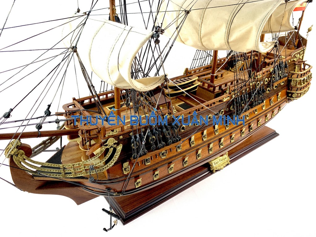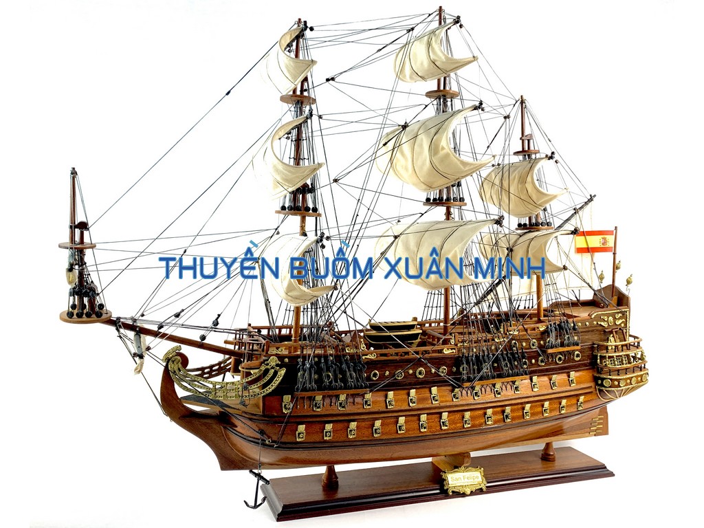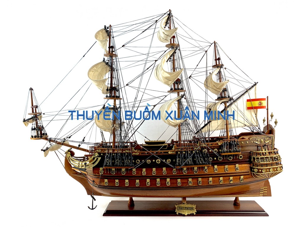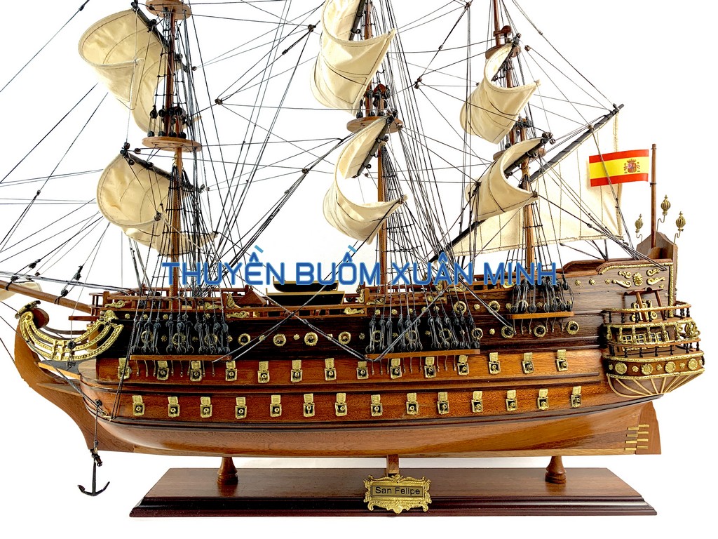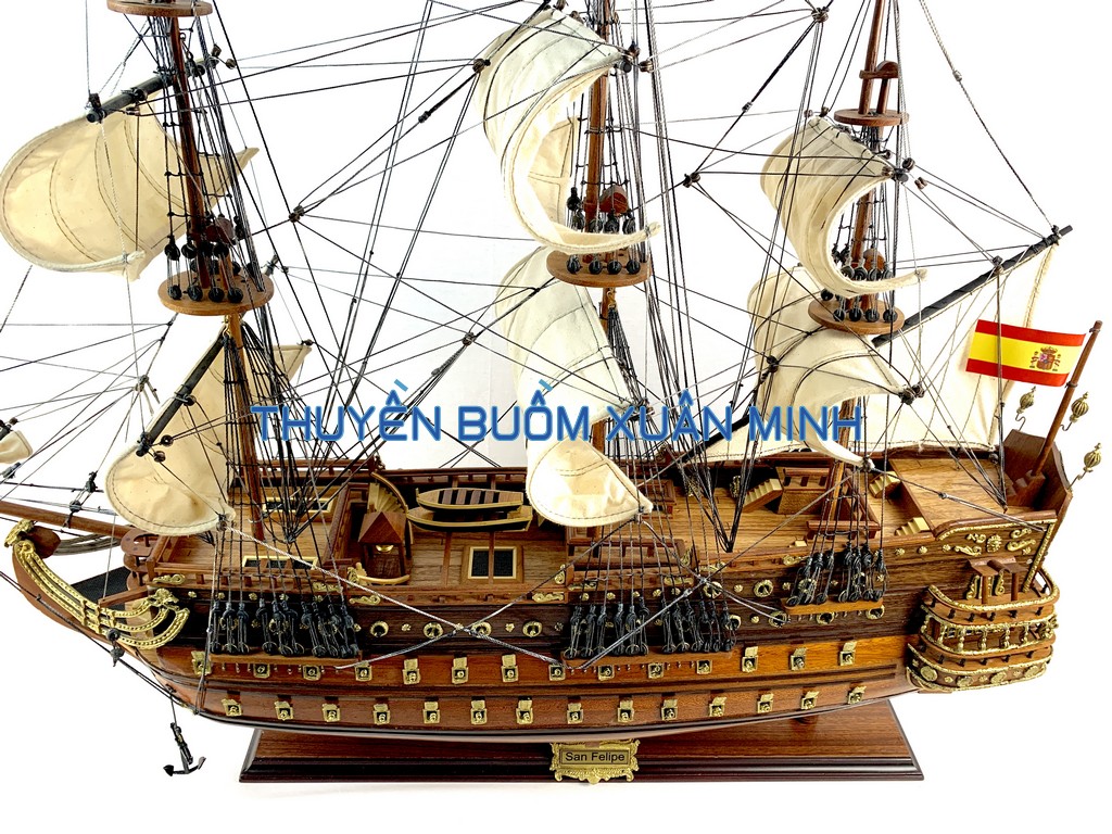Được xây dựng vào năm 1690, con tàu San Felipe sớm tỏ ra là tàu chiến mạnh nhất của Tây Ban Nha hơn bao giờ hết. Kết cấu mỏng của thuyền và cánh buồm rộng giúp cho khả năng cơ động trở nên tuyệt vời và nhanh nhẹn hơn. Sản phẩm như hình và được thủ công từ gỗ tự nhiên 100%
