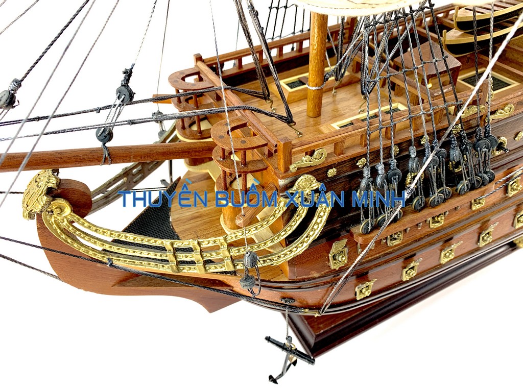 **MÔ HÌNH THUYỀN CHIẾN HẠM HOÀNG GIA SAN FELIPE (TÀU CỔ CHIẾN HẠM TÂY BAN NHA) | HÀNG XUẤT KHẨU - GỖ CĂM XE | THÂN 80cm