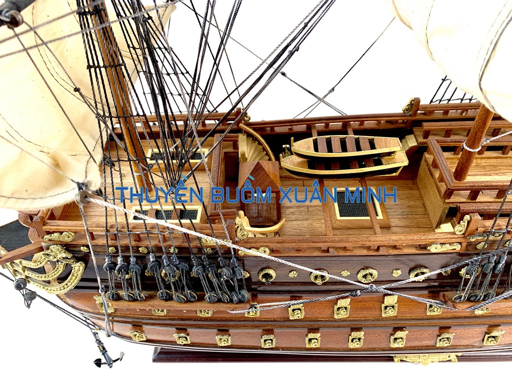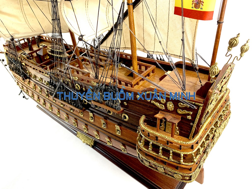 _ Mô hình được xây dựng dựa trên con tàu thực tế, theo bản vẽ, tranh vẽ mang tính lịch sử. Phía sau đuôi thuyền được thiết kế chi tiết, với lá cờ Tây Ban Nha giống với phiên bản thực tế.