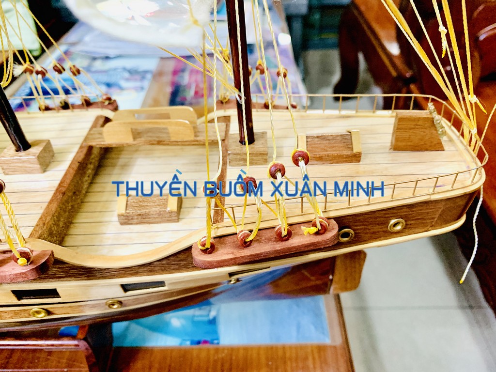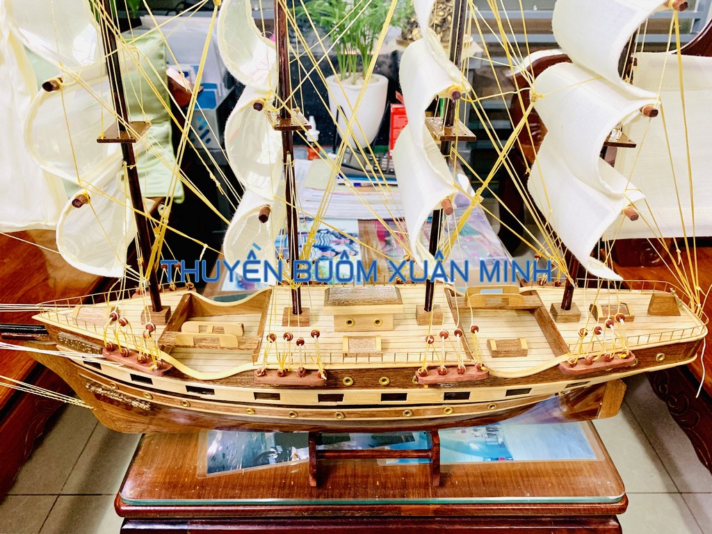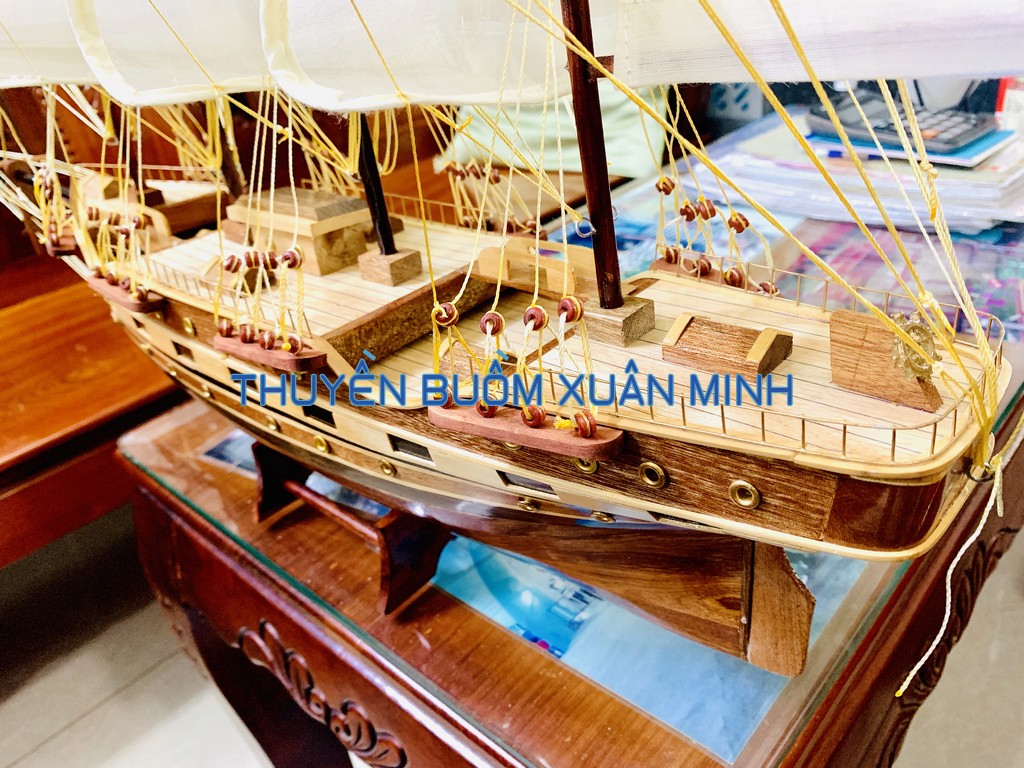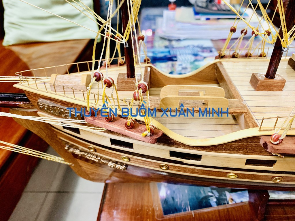_ Mô hình được thiết kế tỉ mỉ, chắc chắn và được chạm khắc tinh xảo, bắt mắt người xem với chất liệu gỗ tự nhiên cùng với lớp sơn bóng PU không lo mối mọt trong thời gian dài. Hơn nữa các chi tiết, bộ phận như vỏ tàu, thân tàu, boong tàu, cột và cánh buồm, cũng như các trang trí khác.. được thiết kế phù hợp với tỷ lệ mô hình thuyền gỗ này.