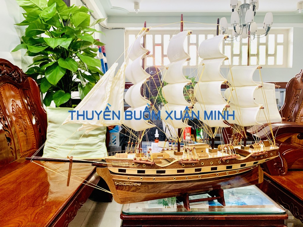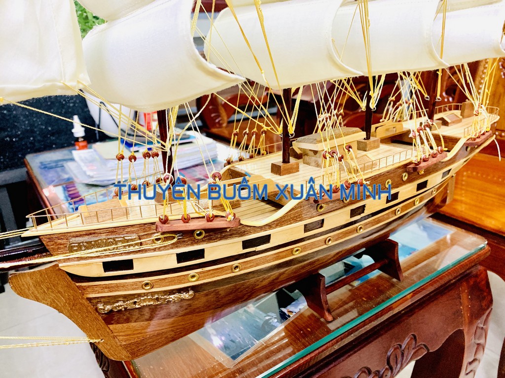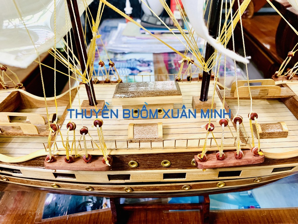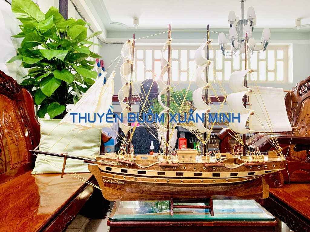 _ Mô hình được thiết kế tỉ mỉ, chắc chắn và được chạm khắc tinh xảo, bắt mắt người xem với chất liệu gỗ tự nhiên cùng với lớp sơn bóng PU không lo mối mọt trong thời gian dài. Hơn nữa các chi tiết, bộ phận như vỏ tàu, thân tàu, boong tàu, cột và cánh buồm, cũng như các trang trí khác.. được thiết kế phù hợp với tỷ lệ mô hình thuyền gỗ này.