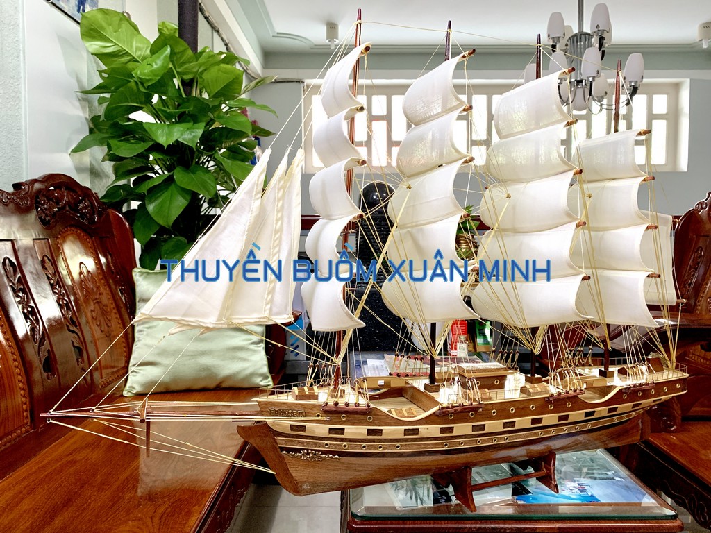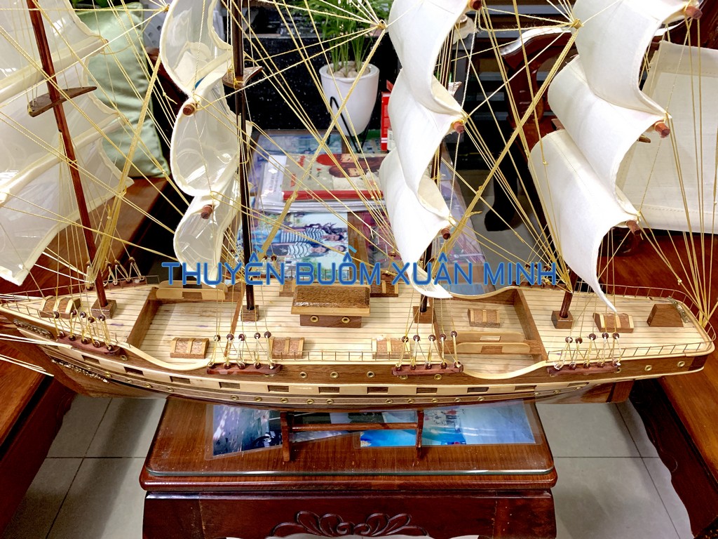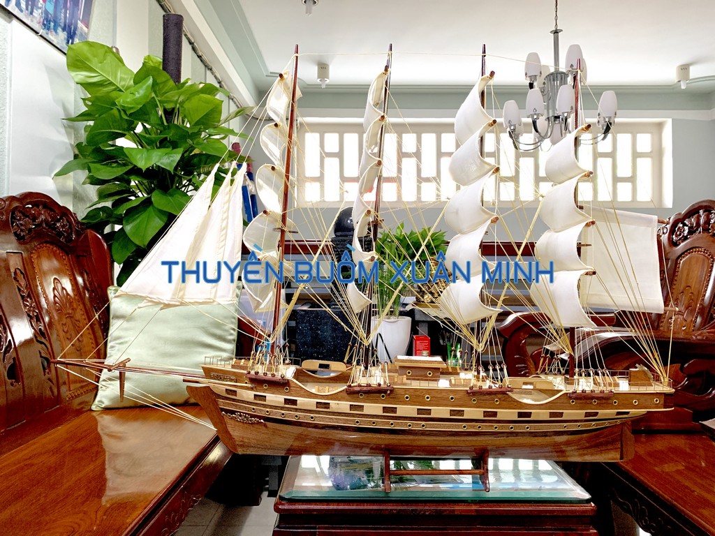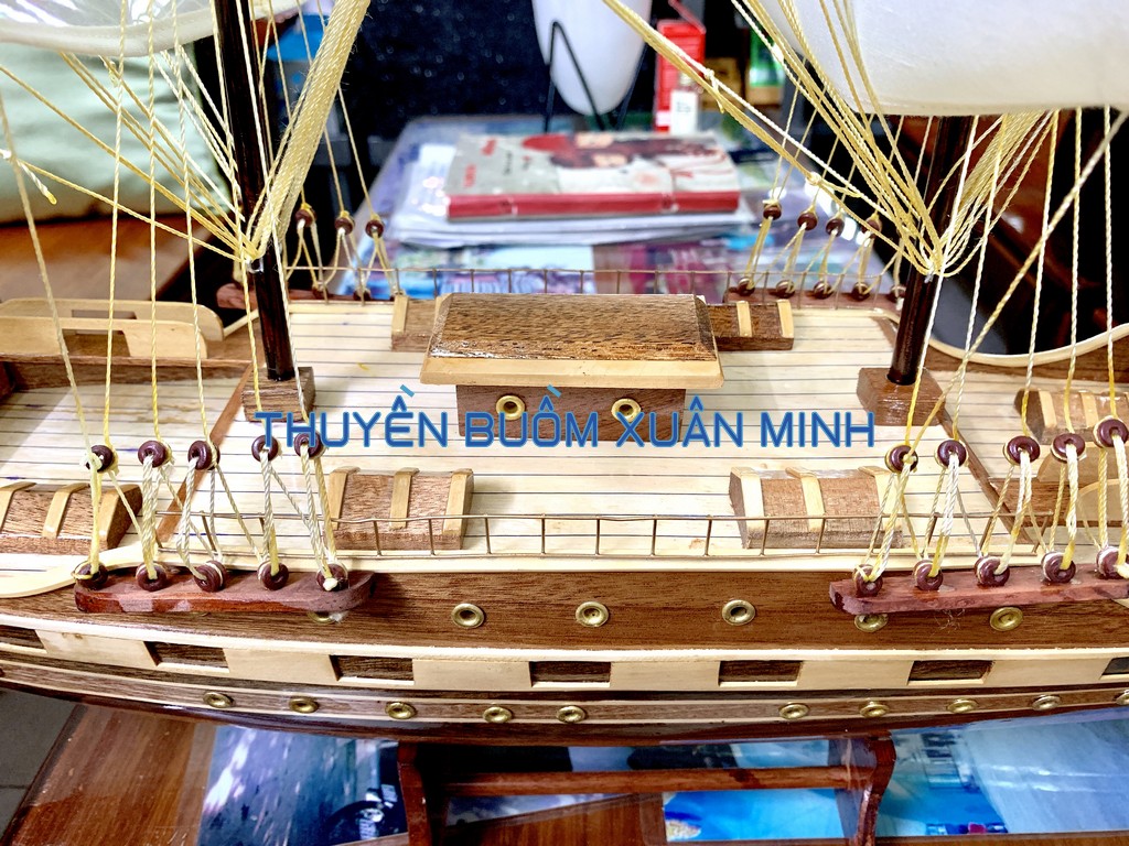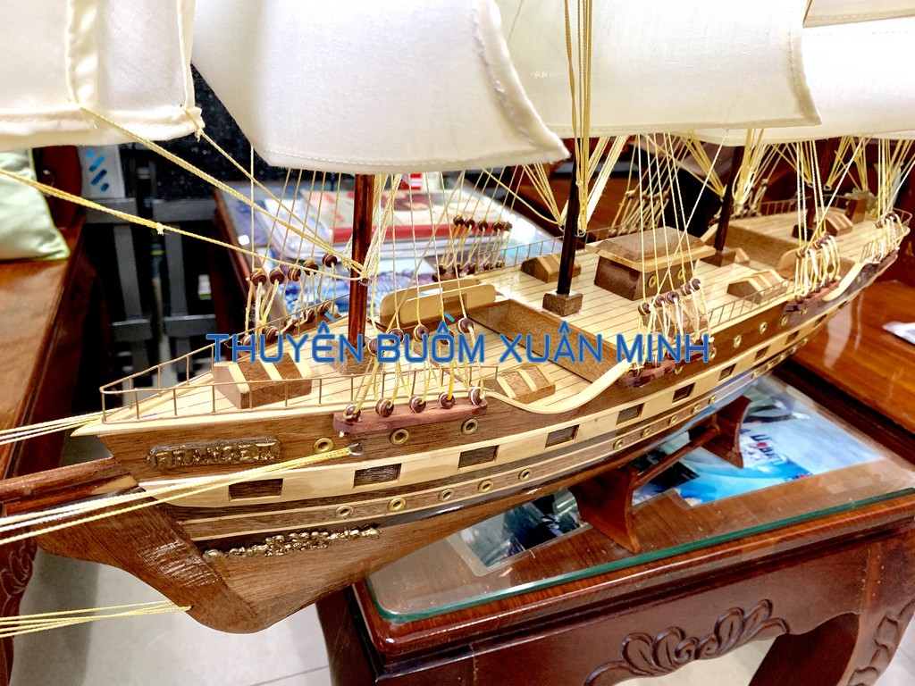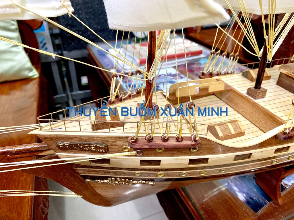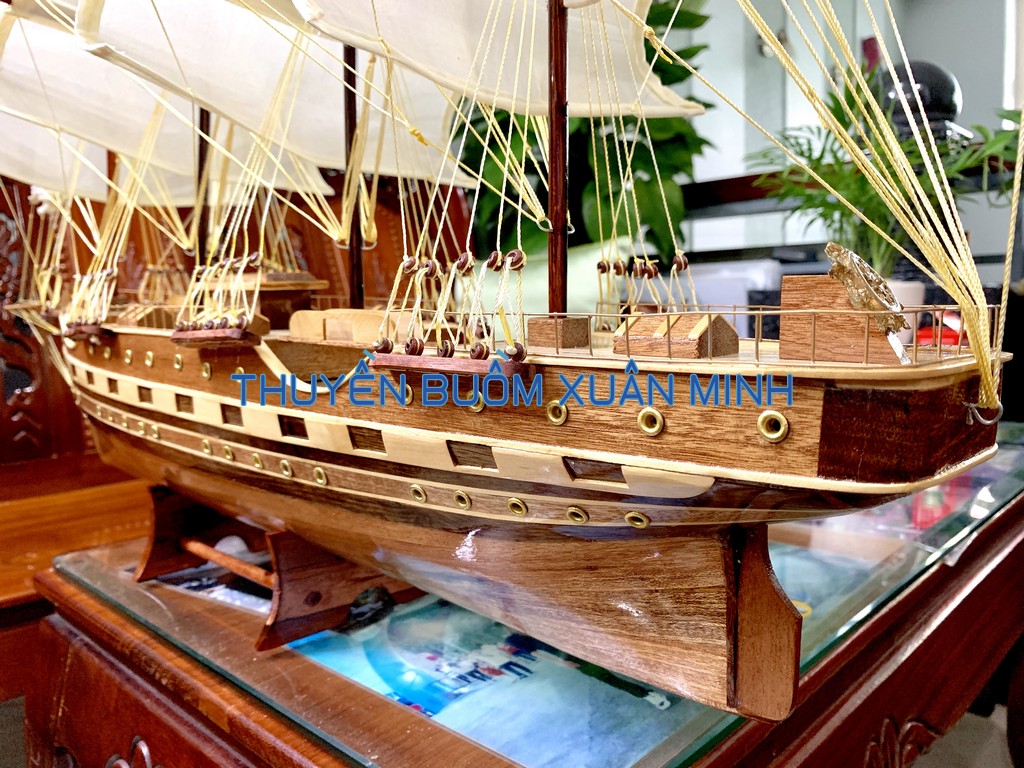 _ Mô hình được thiết kế tỉ mỉ, chắc chắn và được chạm khắc tinh xảo, bắt mắt người xem với chất liệu gỗ tự nhiên cùng với lớp sơn bóng PU không lo mối mọt trong thời gian dài. Hơn nữa các chi tiết, bộ phận như vỏ tàu, thân tàu, boong tàu, cột và cánh buồm, cũng như các trang trí khác.. được thiết kế phù hợp với tỷ lệ mô hình thuyền gỗ này.