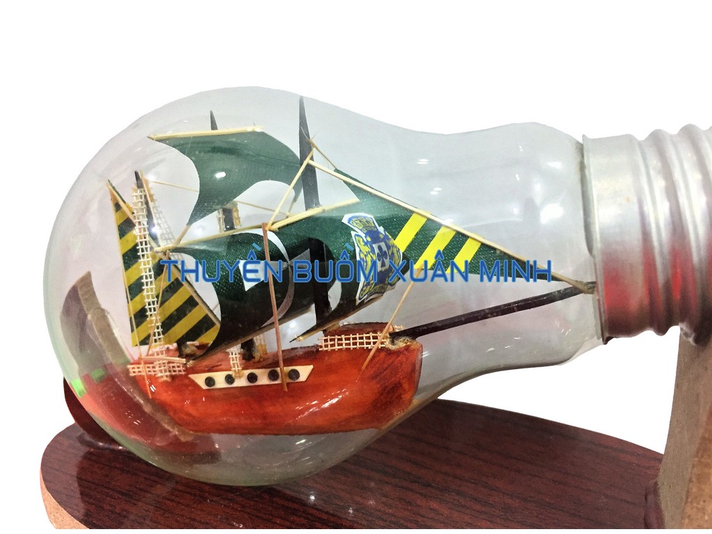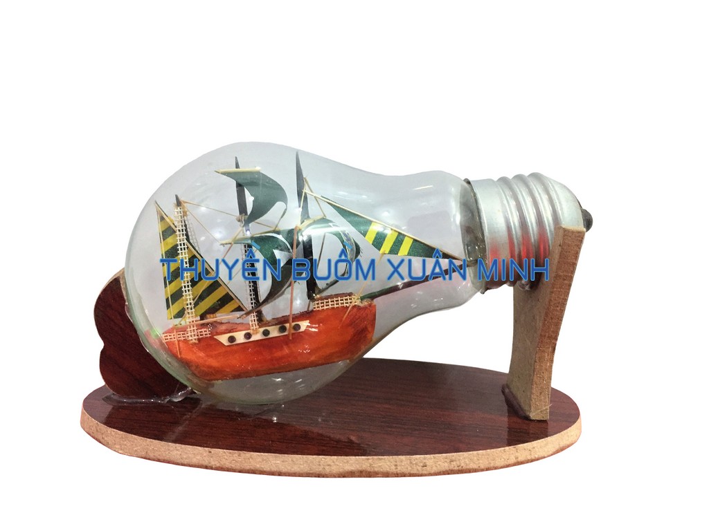 + 01 Mô Hình Thuyền Gỗ Trong Bóng Đèn Thuỷ Tinh - R4, xuất xứ Việt Nam.