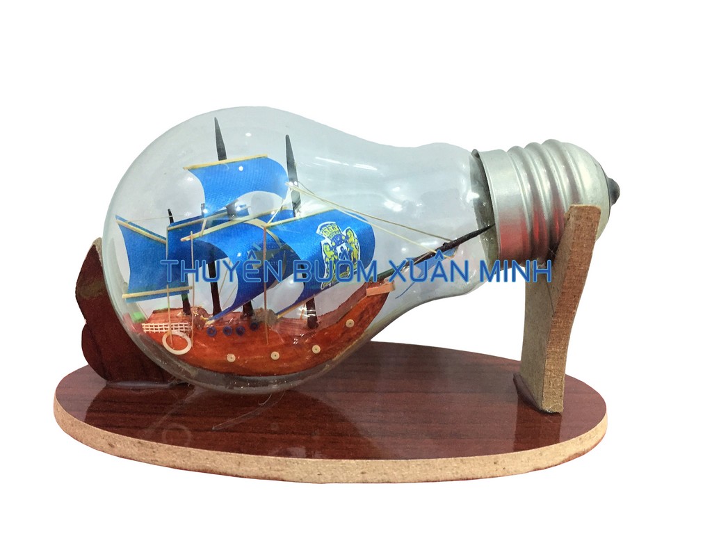 + 01 Mô Hình Thuyền Gỗ Trong Bóng Đèn Thuỷ Tinh - R5, xuất xứ Việt Nam.