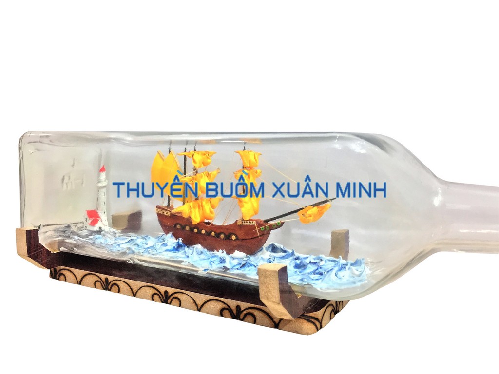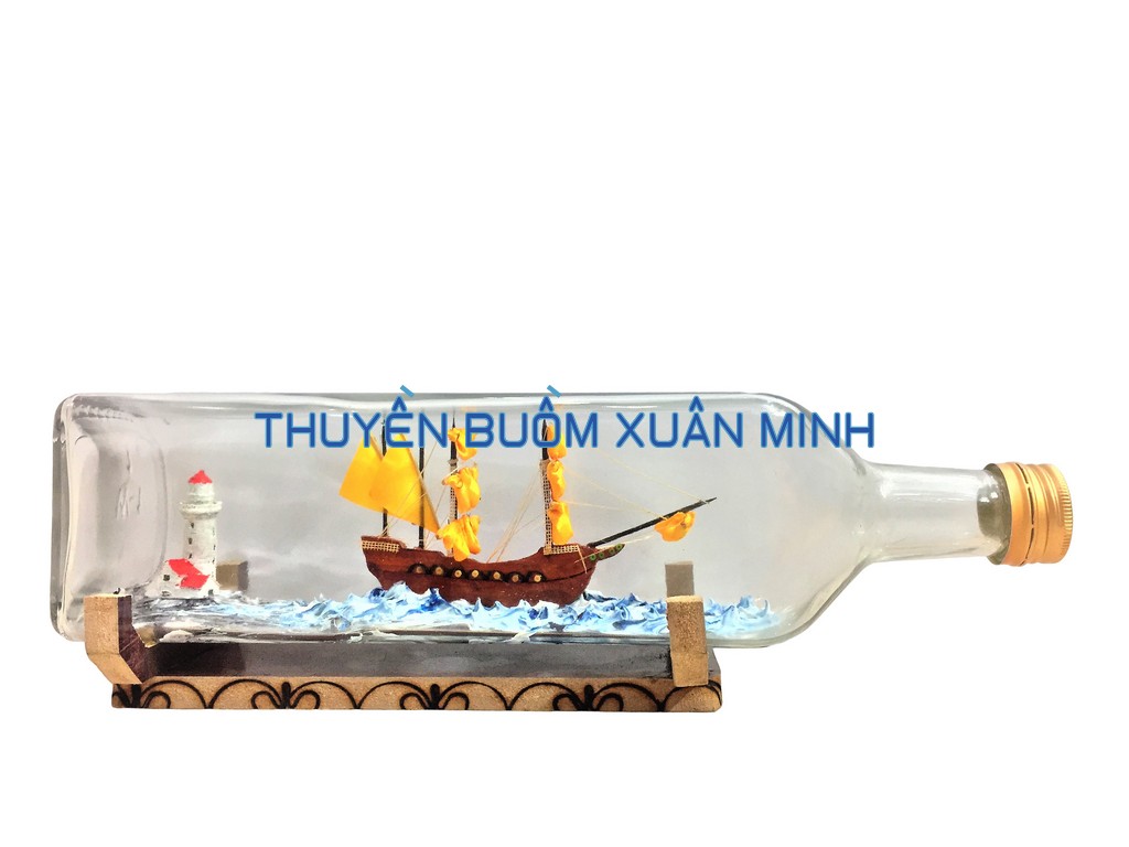 _ Mô hình Thuyền gỗ trong chai rượu được thiết kế tỉ mỉ, chắc chắn và độc đáo.