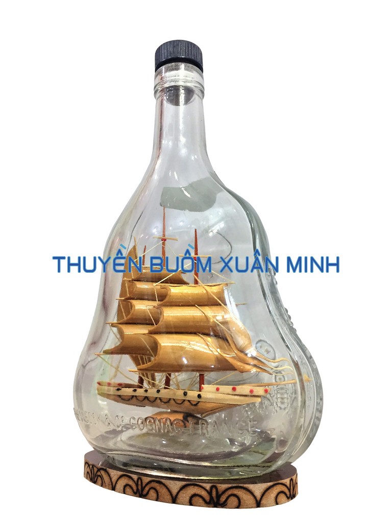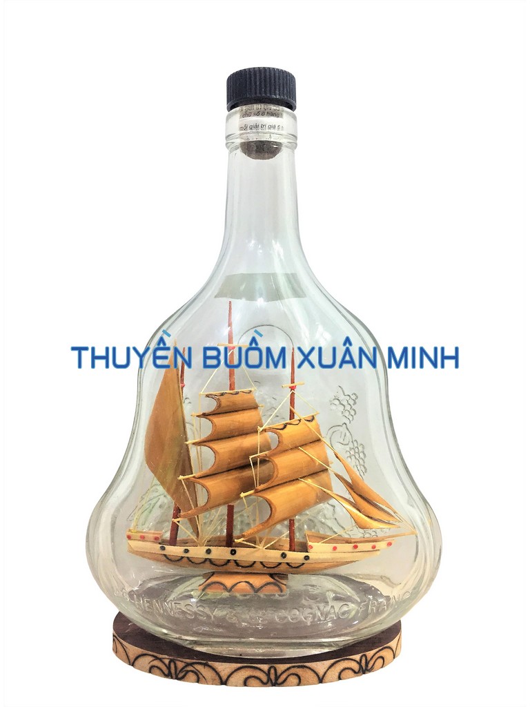 **MÔ HÌNH THUYỀN GỖ TRONG CHAI RƯỢU HENNESSY X.O - D4