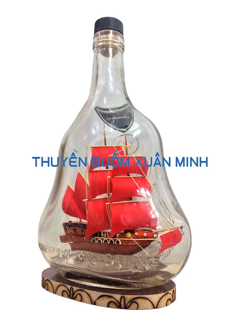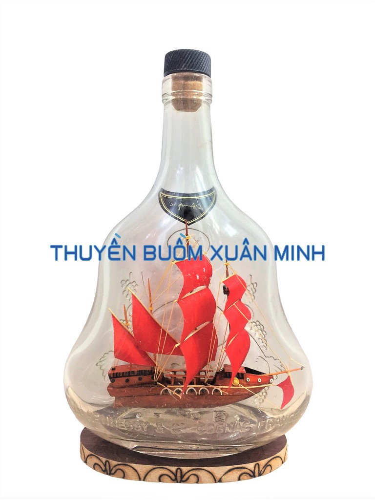 **MÔ HÌNH THUYỀN GỖ TRONG CHAI RƯỢU HENNESSY X.O - D6