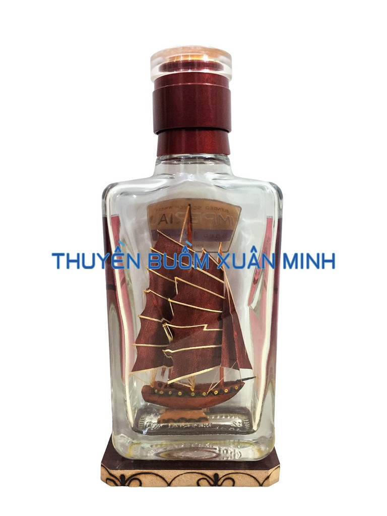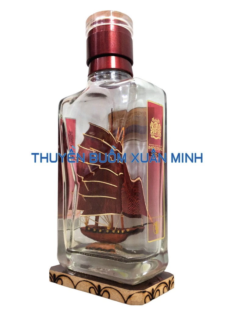 + 01 Mô Hình Thuyền Gỗ Trong Chai Rượu Imperial - S1, xuất xứ Việt Nam.