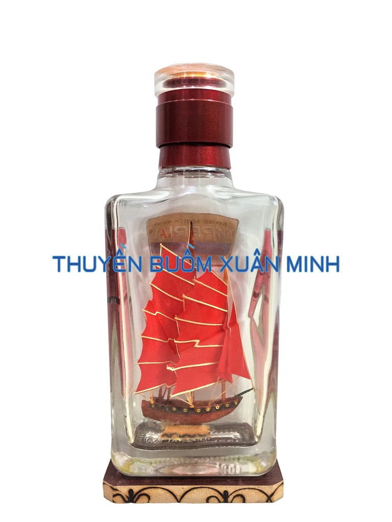 + 01 Mô Hình Thuyền Gỗ Trong Chai Rượu Imperial - S2, xuất xứ Việt Nam.