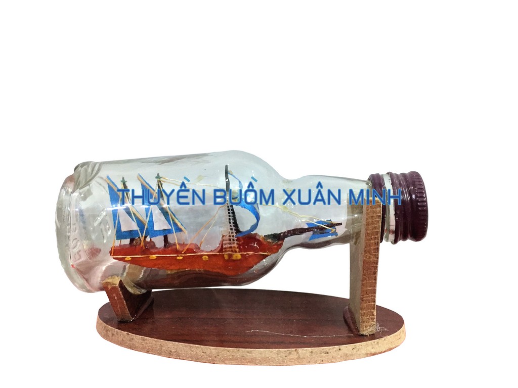 + 01 Mô Hình Thuyền Gỗ Trong Chai Thuỷ Tinh - Z4, xuất xứ Việt Nam.