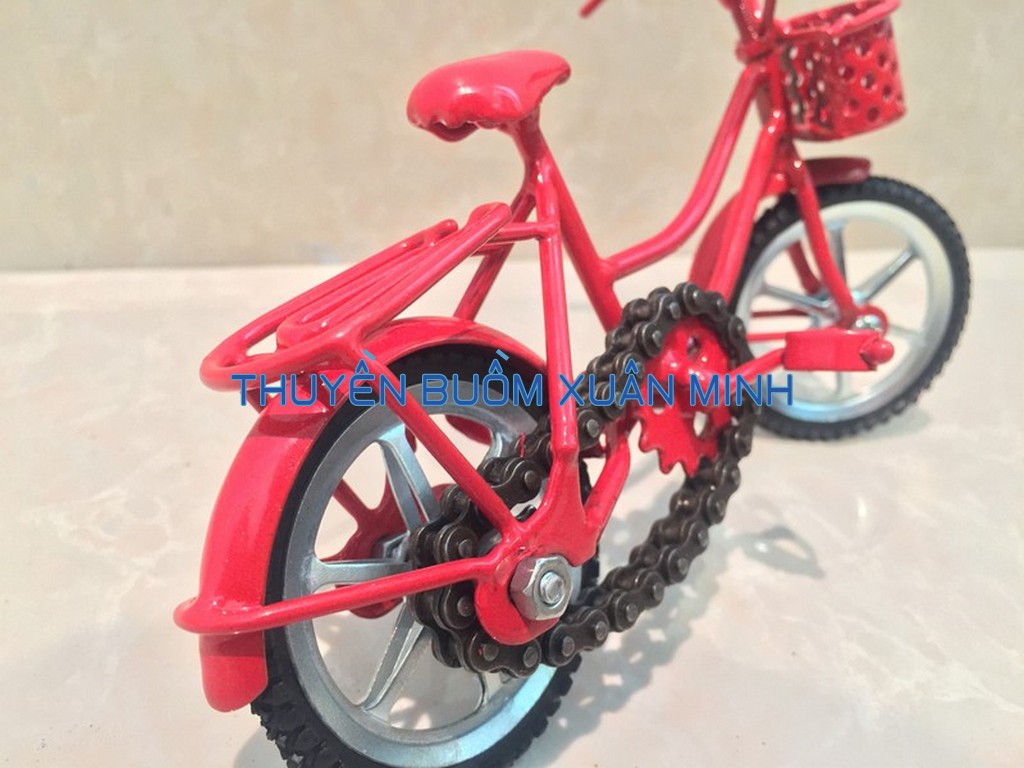 _ Mô hình được thiết kế tỉ mỉ, chắc chắn và được chạm khắc tinh xảo, bắt mắt người xem với lớp sơn đỏ nổi bật. Hơn nữa các chi tiết, bộ phận như bánh xe, chỗ ngồi, dây sên, tay lái và cũng như các trang trí khác,... được thiết kế phù hợp với tỷ lệ mô hình Xe Đạp sắt này.