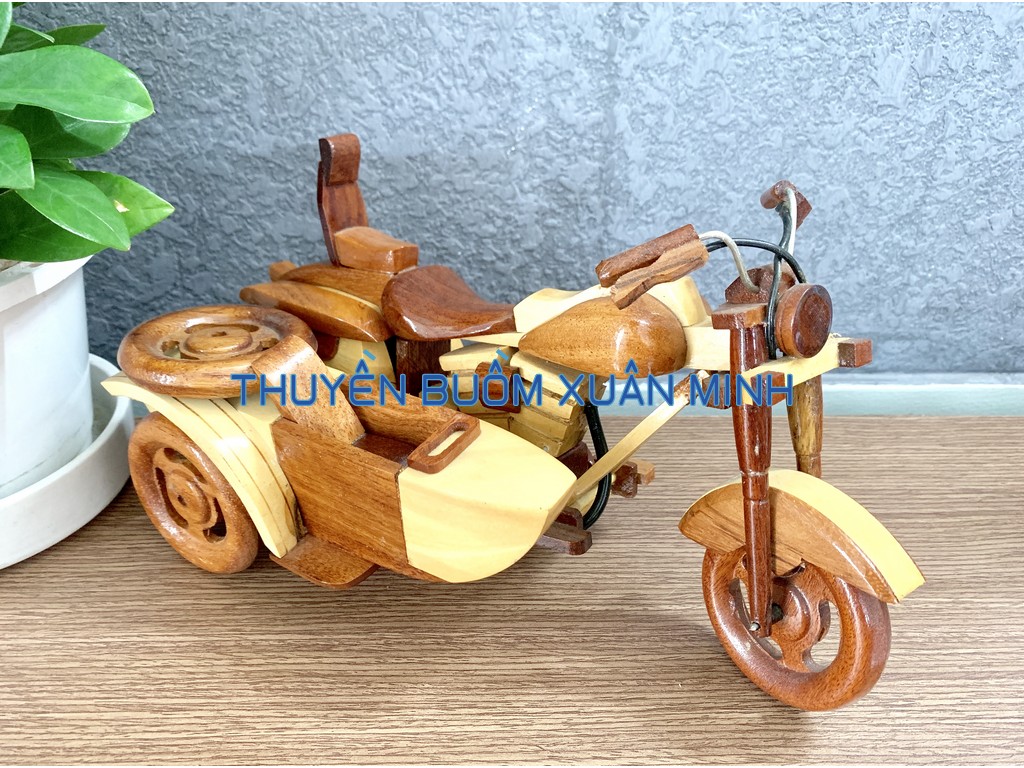 **MÔ HÌNH XE MOTO GỖ HARLEY SIDECAR TRANG TRÍ | LOẠI TIÊU CHUẨN | SIZE LỚN