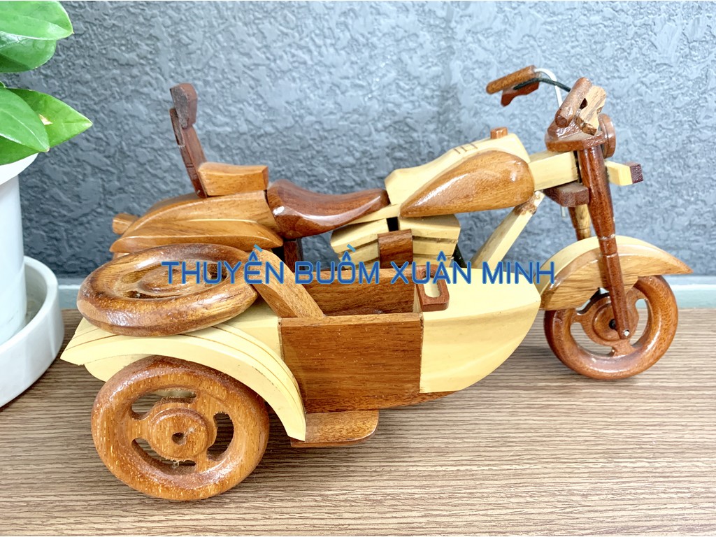 **MÔ HÌNH XE MOTO GỖ HARLEY SIDECAR TRANG TRÍ | LOẠI TIÊU CHUẨN | SIZE NHỎ