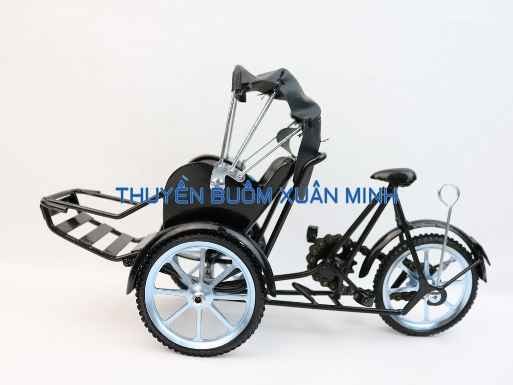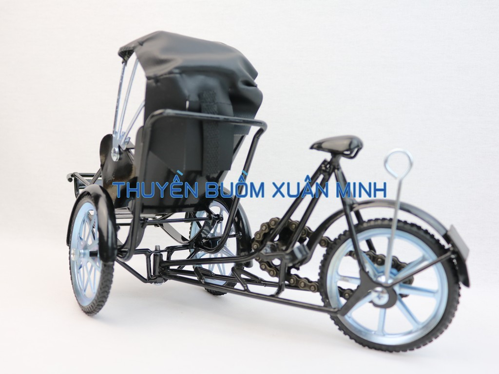 **MÔ HÌNH XE XÍCH LÔ SẮT TRANG TRÍ | SIZE NHỎ 23cm (SƠN ĐEN)