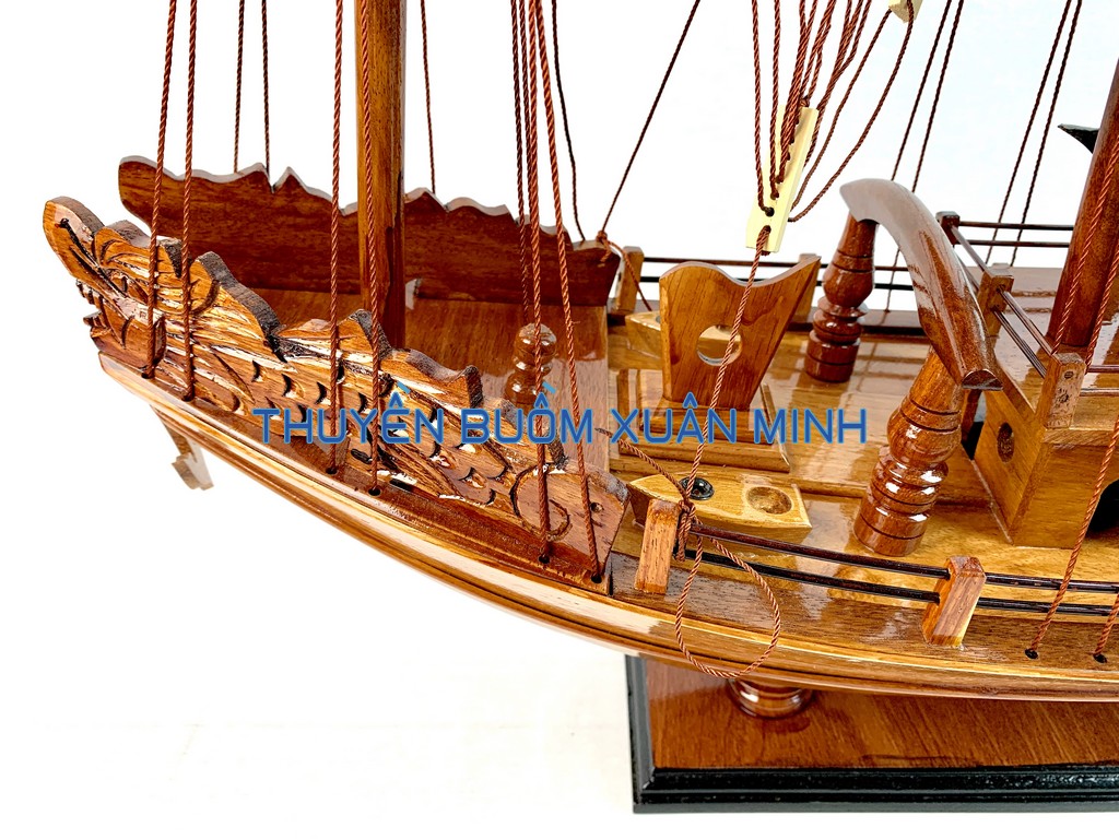 _ Mô hình được thiết kế tỉ mỉ, chắc chắn và được chạm khắc tinh xảo, bắt mắt người xem với chất liệu gỗ tự nhiên cùng với lớp sơn bóng PU không lo mối mọt trong thời gian dài. Hơn nữa các chi tiết, bộ phận như vỏ tàu, thân tàu, boong tàu, cột và cánh buồm, cũng như các trang trí khác.. được thiết kế phù hợp với tỷ lệ mô hình thuyền gỗ này.