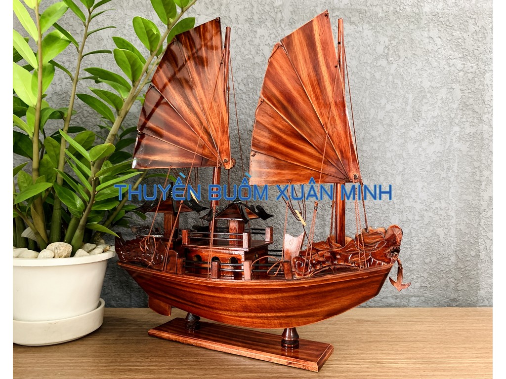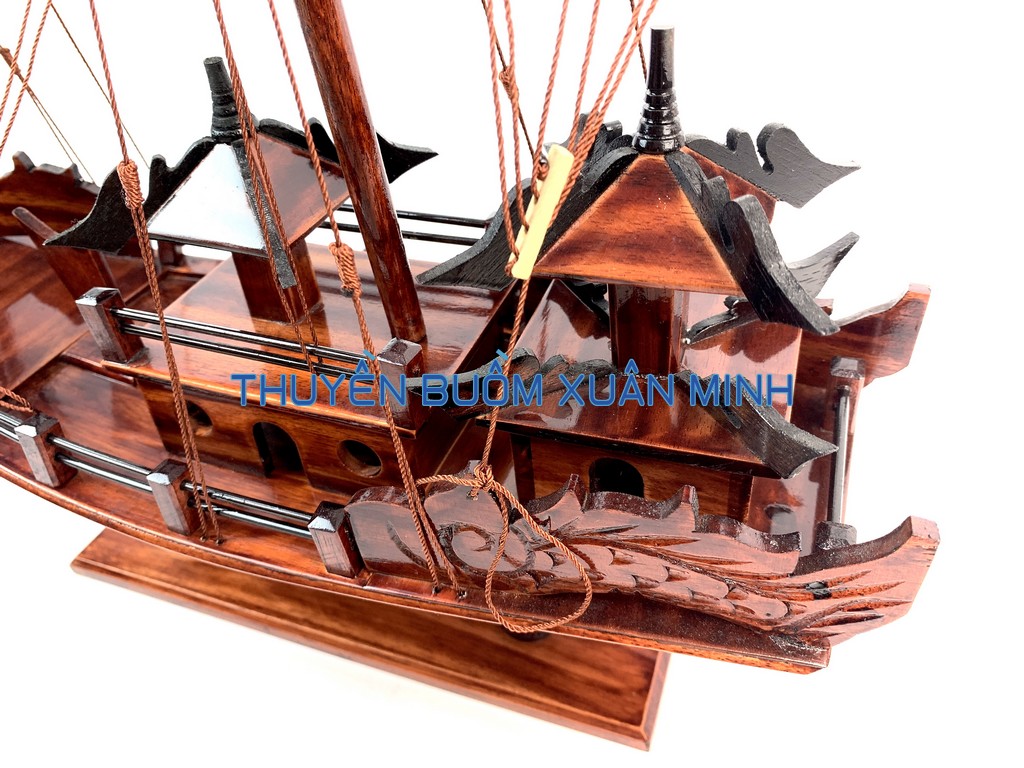 Mô hình được mô phỏng từ chiếc thuyền cổ Hạ Long có xuất xứ từ Trung Hoa, thường được dân buôn vận chuyển hàng hoá hay được dùng để chuyên chở khách du lịch. Sản phẩm như hình và được thủ công từ gỗ Tràm bông vàng 100%