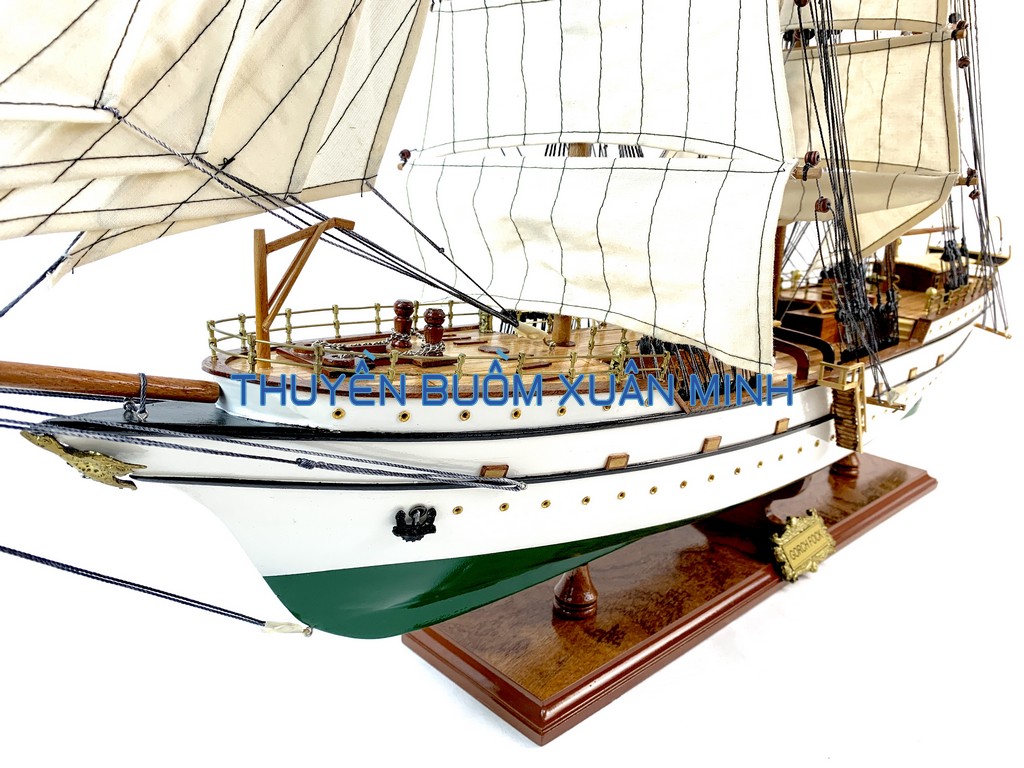 **MÔ HÌNH THUYỀN GỖ HẢI QUÂN ĐỨC GORCH FOCK (SƠN MÀU) HÀNG XUẤT KHẨU | GỖ CĂM XE | THÂN 90cm