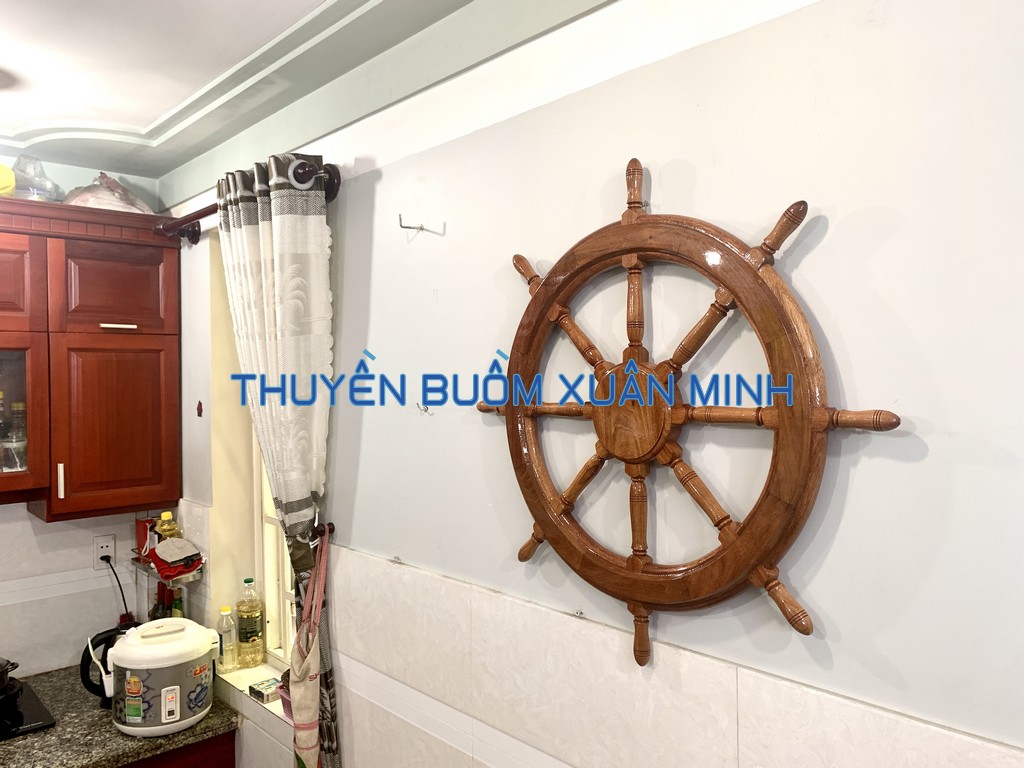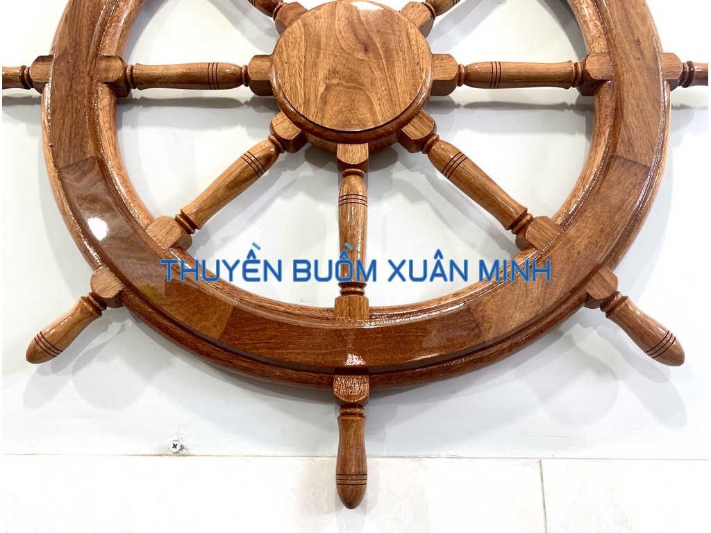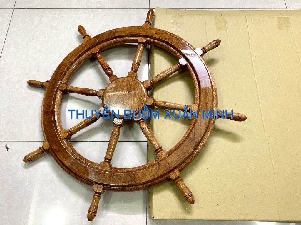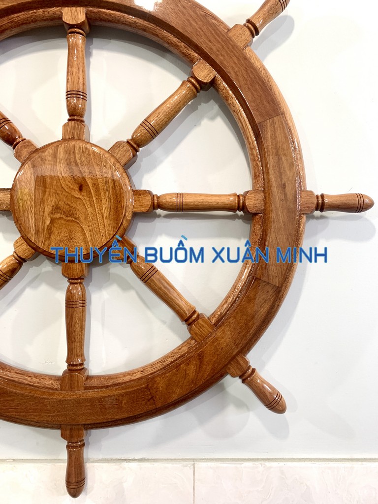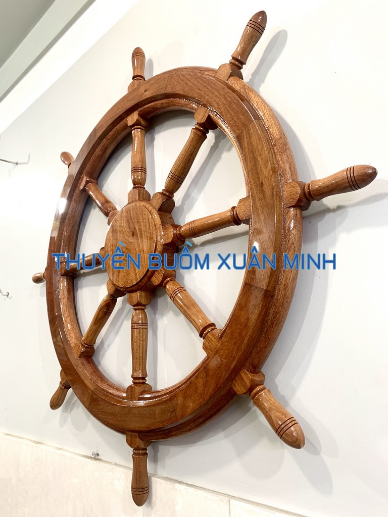 Bánh Lái tàu biểu trưng cho sự định hướng, đảm bảo sự ổn định và vận hành một cách thông suốt. Sản phẩm như hình, được thủ công từ gỗ Căm Xe tự nhiên 100% và được sơn bóng PU giúp giữ tone màu gỗ tự nhiên lâu bền